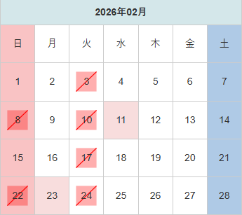 毎週火曜日、第2・第4日曜日(8