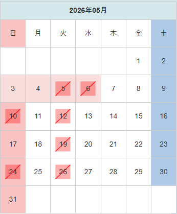 5月お休みのお知らせ