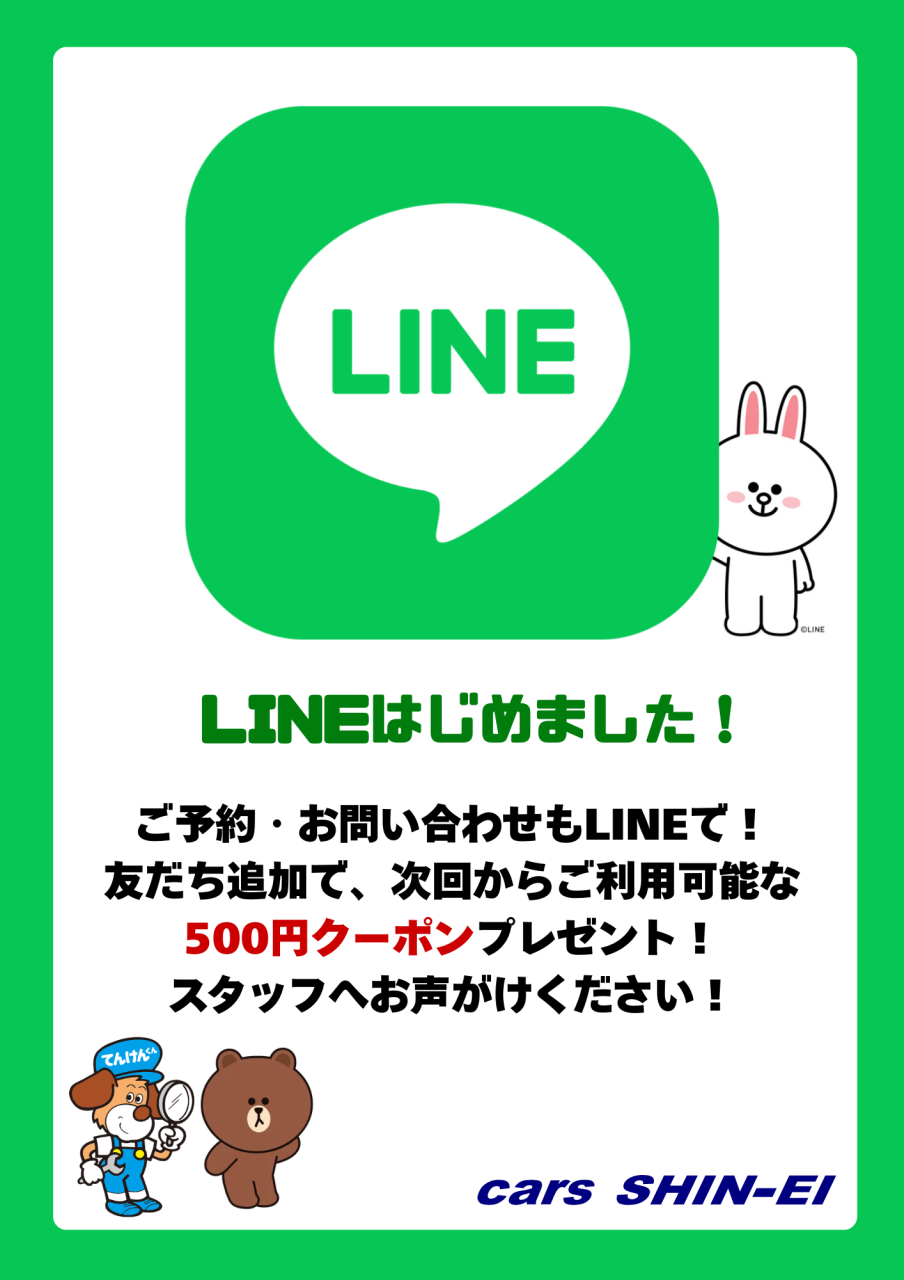 この度カーズシンエイ公式LINEはじめました。チャットでご予約やお問い合わせしていただけます!